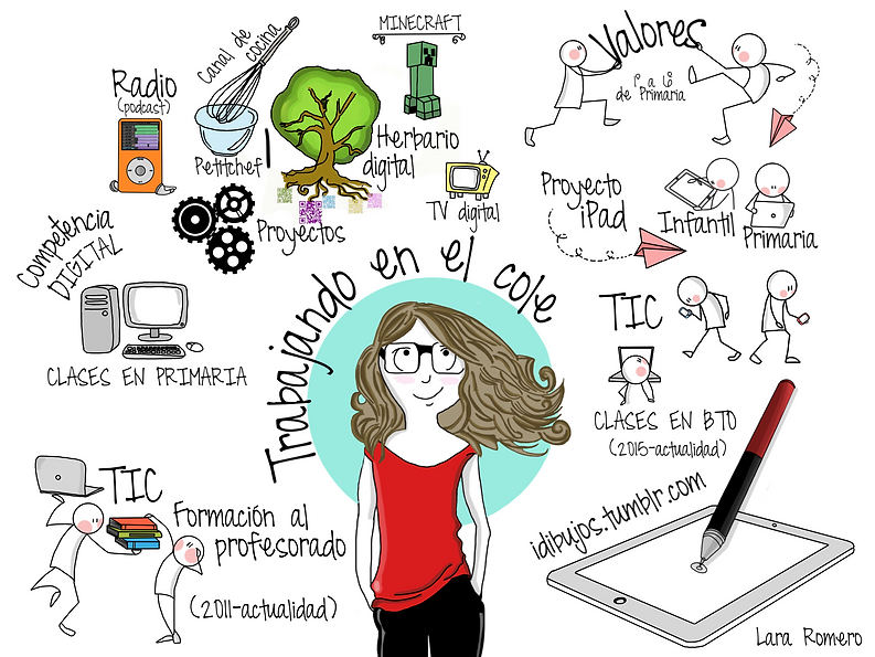 Sus trabajos más destacados son Petit Chef y Minecraft, ambos desarrollados con alumnos de 6º de primaria. Es muy interesante visitar sus tableros sobre Pensamiento Visual en Pinterest, click aquí.